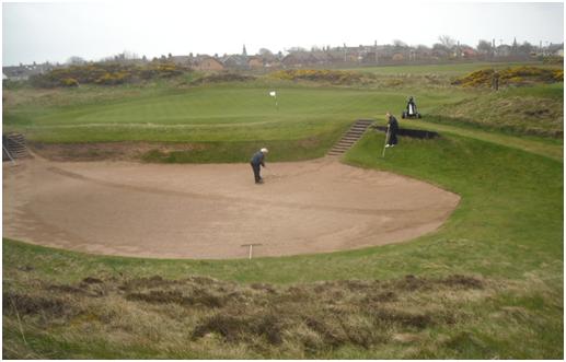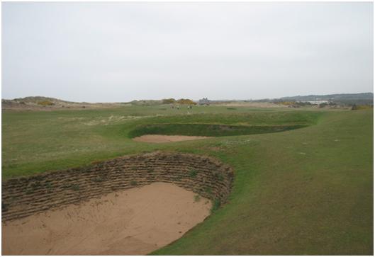 In 1860 Prestwick became the birthplace of the British Open Championship. The first twelve Open Championships were held at Prestwick; in all it has hosted 24 Opens, the last in 1926. Prestwick is an old fashioned links course in the true sense of the word, a wind-swept, desolate area, but a masterpiece nonetheless. Designed by Old Tom Morris, the course is built on an undulating sandy stretch that links the beach to the inland. Its 6,544 yards follow the natural contours of the terrain and features some odd twists and turns and even some nasty blind shots. Prestwick has changed little over the last 150 years. It is a wild kingdom where heather and gorse rule over all and which, in combination with the seemingly statutory, cavernous Scottish bunkers, can play havoc with what so often promises to be a respectable score. Prestwick's fairways are narrow, its greens small and undulating, and the approaches interesting. On a calm day, Prestwick can be forgiving, but when the wind blows in off the Firth of Clyde, you’d better lower your expectations for, in times like these, good scores are hard to come by. Prestwick’s signature hole is the par 5 third, the location of the infamous "Cardinal Bunker" — a vast expanse of sand split by the fairway and faced with a wall of railroad ties; wind or no wind, this is tough one. And then, of course, there’s Pow Burn and its meandering waters to contend with. Willie Campbell's grave, a bunker on the current 16th hole where Willie, leading in the Open of 1887, took four shots to escape, and in so doing, lost the Championship to Willie Park Jr. Take a moment to appreciate what Prestwick golf course has to offer. Visit their website for more details. See a video presentations. |